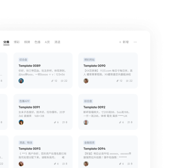 爲各個行業提供有效、高送達的短信模板,包含純鏈接、短話術以及常規短信字數的優質模板